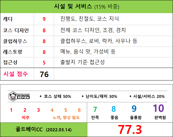 ▶ 캐디의 코스 설명, 운영 및 친절도: ★★★★☆