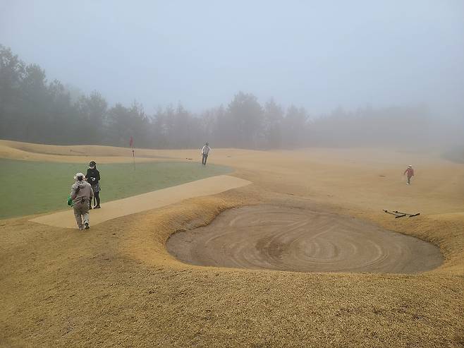 대부분 그린 크기는 중 사이즈에 언듈레이션도 있어서 난이도 역시 중급으로 느껴졌습니다. 핀 위치는 안개 때문인지 앞 핀이 많았고, 잘 보이지 않아서 공격적으로 플레이하기 어려웠습니다.
