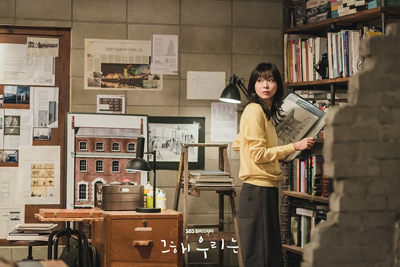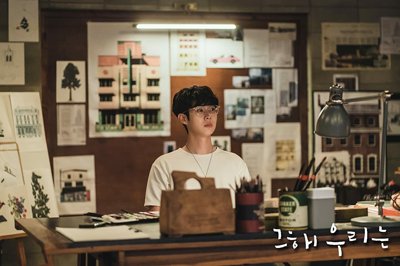 자극적인 드라마 사이에서 청량함을 가득 안긴 드라마, <그 해 우리는>. 최우식과 김다미의 남다른 케미스트리도 좋았지만, 극 중 아티스트로 나오는 최우식의 작업 공간 역시 드라마를 계속 눈여겨보게 만드는 요소였다. 인더스트리얼 콘셉트의 카페처럼 벽을 허물다 만 상태로, 벽돌과 콘크리트 자재를 그대로 노출시키며 공간을 분리한 것이 특징이다. 뒤쪽 벽 역시 그레이 컬러로 자칫 차갑게 느껴질 수 있는 공간이지만, 전반적으로 우드 소재의 가구를 활용해 따뜻함을 더했다. 작업실 한가운데에 책상을 배치해 색다르게 공간을 활용했다는 점도 참고하면 좋다. 한쪽에 차곡차곡 쌓아 둔 그림과 책, 수직과 수평을 맞춰서 벽에 정갈하게 붙인 작업물은 주인공의 아티스트적인 면모를 더함과 동시에 작업 공간에 아늑한 온기를 더하는 요소다.