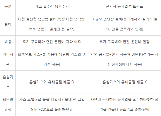 <표-가스 흡수식 냉온수기와 전기식 공기열 히트펌프 비교>