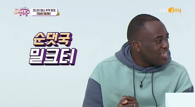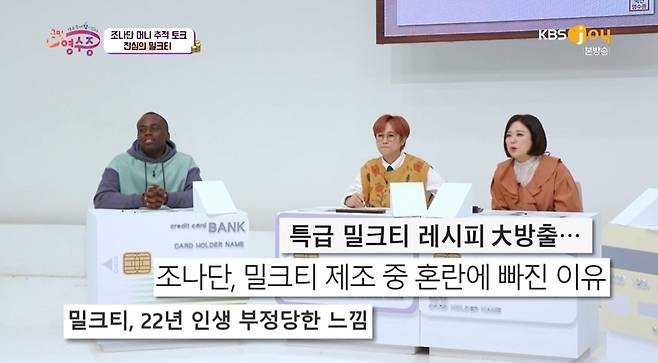 이어 "사람들이 순댓국에 넣는 들깨가루 같다고 '순댓국 밀크티'라고 하더라"고 덧붙였다. (사진=KBS Joy '국민 영수증' 캡처)