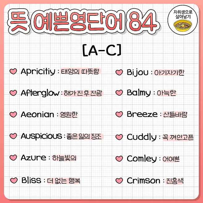 각인하기 딱 좋은! 예쁜 의미 가진 영단어 84개