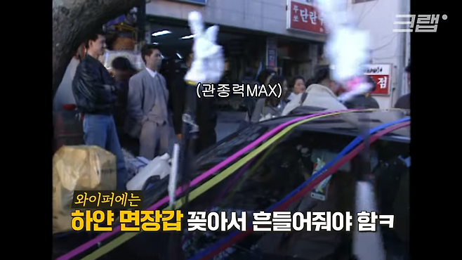 하얀 면장갑을 와이퍼에 달고 흔드는 등 요란했다고 합니다.