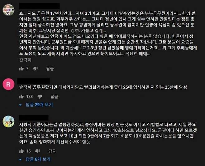 여기엔 여러 댓글이 달렸다. 공무원이 부럽다는 것부터 시작해서, 빨리 시작하라는 댓글들도 있었다. 또 다른 부류의 댓글은 인생에 욕심이 있으면 공무원이 비추라는 것이다. 공무원 세계에서도 단점이 꽤나 많다. 다른 사기업들처럼 완벽한 조직이 결코 아니다. 조직 문화부터 시작해서 다른 직종으로 이직이 어렵다는 점 등 일반 회사처럼 다른 단점이 분명히 존재한다. 세상에는 완벽한 회사나 개인이 존재하지 않는다. 그저 완전해지는 과정만이 있을 뿐이다. 완벽하지 않다고 해서 단점만 바라보거나 나쁘다고 치부해버리는 게 아니라, 지금 있는 장점을 극대화하고 조금은 개선해보는 노력을 기울여보는 건 어떨까? 어떤 식으로 세상을 바라보는 프레임에 따라서 개인의 만족도와 삶의 태도 또한 달라진다.