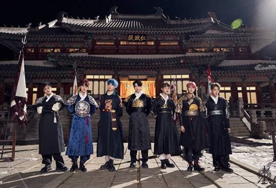 공개된 사진 속 킹덤은 각기 다른 곤룡포를 입고 궁 앞에서 왕의 위엄을 뽐내고 있다. 곤룡포 속 화려한 용 무늬가 킹덤의 비주얼에 무게감을 더했다. '꽃도령'으로 변신한 멤버들의 개인 사진에서는 다채로운 한복 패션이 눈길을 끌었다. 미공개 사진에서 드러난 킹덤의 변화무쌍한 매력이 국내는 물론 해외 팬들의 마음을 사로잡았다.