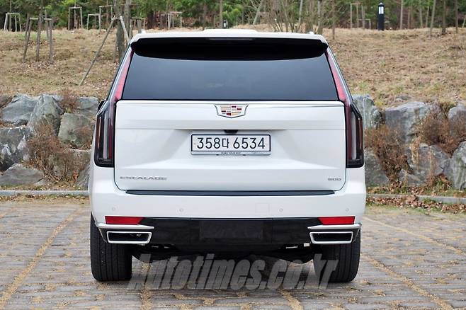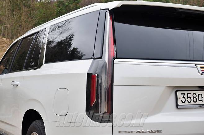뒤는 에스컬레이드 정체성이 돋보인다. 버티컬 타입 테일램프만 봐도 단번에 알아차린다. 오프닝 세레머니와 함께 선명하면서도 압도적인 뒤태를 완성한다. 트렁크 중앙을 지나는 금속 소재와 히든 타입 와이퍼 적용으로 전체적인 인상도 깔끔하다. 배기구와 블랙 투톤으로 마무리한 뒷범퍼 역시 단정하다.