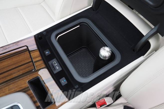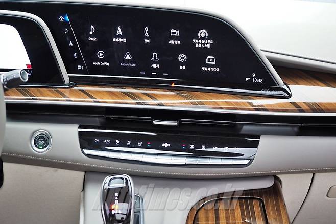 센터페시아는 전체적으로 수평을 강조한 디자인이다. 송풍구와 깔끔한 공조장치 버튼이 마련돼 있다. 각 아이콘을 표시하는 그래픽이 개선됐고 눌렀을 때 구현 과정도 섬세하다. 넓은 센터터널은 조작과 수납의 구분을 지어 다른 소재를 적용했다. 모던한 감각을 높이는 데에 큰 도움을 준다. 전자식 변속레버와 각종 버튼이 깔끔하게 매립돼 있고 원목으로 짜 맞춘 수납함은 멋있다.