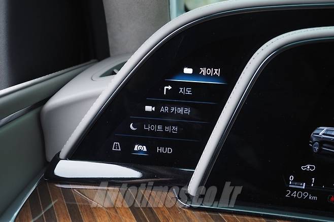 실내는 신형의 특징이 두드러진다. 그 중에서도 단연 시선이 쏠리는 부분은 38인치 OLED 커브드 디스플레이다. 계기판과 센터페시아 모니터를 두 겹으로 매칭해 입체적인 모습을 연출한다. 여기에 극강의 선명함을 바탕으로 운전자에게 다양한 정보를 일목요연하게 제공한다. 두께도 얇고 마감 수준도 기대 이상이다.