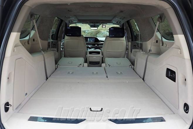 트렁크는 기본 1,175ℓ를 확보했다. 3열 좌석을 접으면 2,665ℓ, 2, 3열 모두 접으면 4,044ℓ까지 늘어난다. 완벽한 평탄화가 가능해 반나절 차크닉이나 차박도 거뜬하고 원룸형 소형 냉장고 및 쇼파와 같은 가구를 넣어도 어색하지 않을 정도의 크기다. 물론 각 시트는 버튼 한번만 누르면 알아서 접힌다.
