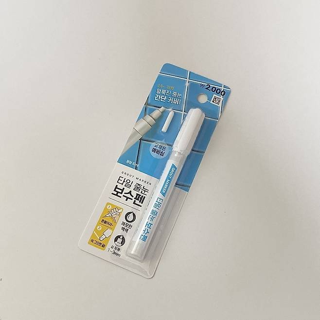 다음은 다이소 타일 줄눈 보수펜. 이사하면서 현관 타일 공사를 하였는데 간장을 쏟아 버려서 줄눈 일부가 착색이 됐다.