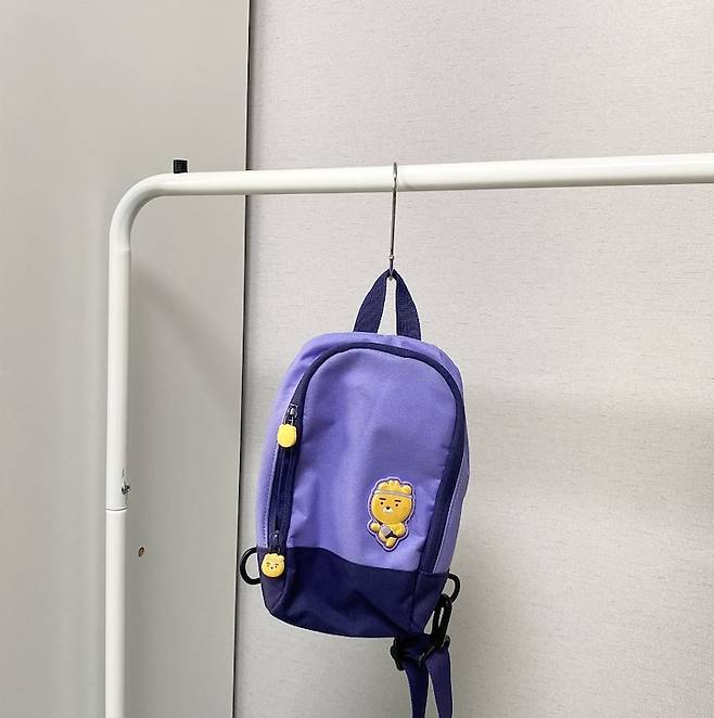 원래는 가방을 책상에 걸어두려고 접착 스티커를 사려고 했으나, 그렇지만 스티커 붙이면 흠 남는 게 싫어서 이렇게 두었더니 간편히 해결!