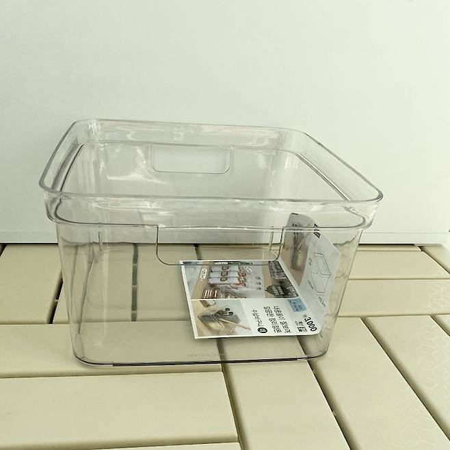 마지막으로 투명 수납바구니! 이거는 다이소에 나온 지 얼마 안 된듯한 느낌. 다이소 정말 자주 가는데 이렇게 투명으로 되어있는 대형 바구니는 처음 봤다.