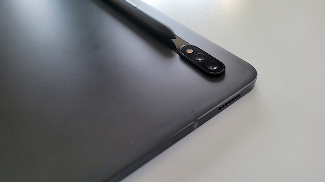 카메라가 약간 더 튀어나왔다는 점을 제외하고는 전 시리즈인 탭 S7과 거의 유사하네요.