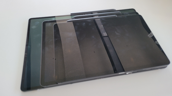 두께를 비교해봐도 엄청나게 얇은 프레임으로 슬림하고 견고한 느낌을 주네요.(가장 아래가 탭 S8 울트라)