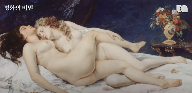두 여자가 서로 나체로 엉켜 잠든 모습을 그린 것인데요.