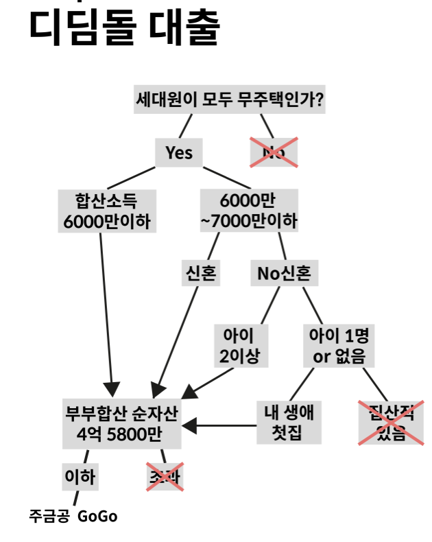 우선 부부합산 연 소득이 6000만원 이하, 합산 순자산이 4억5800만원 이하여야 합니다. 부부가 맞벌이를 할 때는 이 연소득 조건을 통과하기 쉽지 않습니다. 그래서 정부는 1) 신혼부부 2) 자녀가 2명 이상인 부부 3) 생애 첫 주택 구입자인 경우에 한해 부부합산 소득 7000만원까지 자격을 부여합니다. 아, 여기서 신혼부부는 혼인신고를 한 지 7년 이내인 부부입니다. 이 조건을 통과하면 주택금융공사에서 디딤돌 대출을 신청합니다.