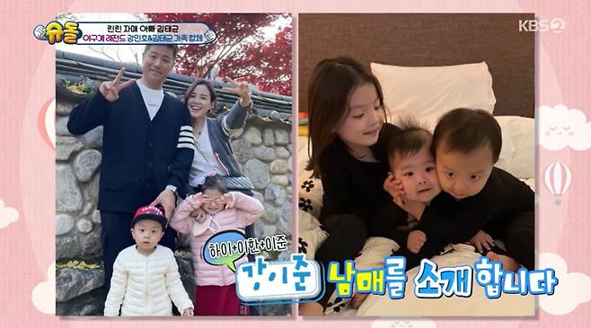 강민호는 미모의 기상캐스터 출신 신소연과 결혼, 슬하 세 아이를 두고 있다. 이날 방송에 등장한 아이들은 첫째 딸 강하이, 둘째 아들 강이한, 막내 아들 강이준이었다.