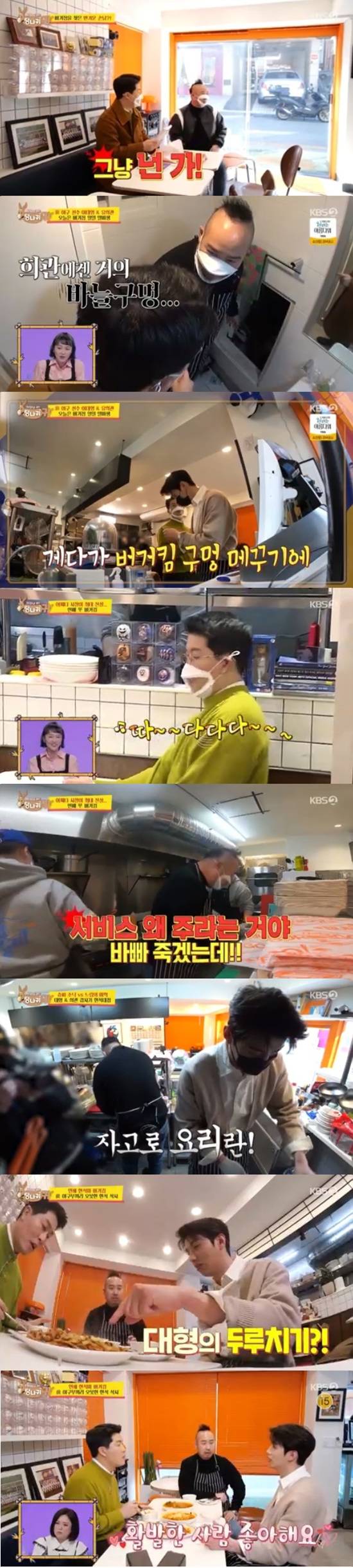 27일 방송된 KBS 2TV '사장님 귀는 당나귀 귀'에서는 이대형이 김병현의 햄버거 가게에서 일을 돕는 모습이 전파를 탔다.