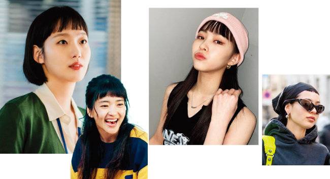 처피뱅은 처피(choppy·고르지 못한)와 뱅(bang·앞머리)의 합성어. 눈썹 위로 짧게 자른 앞머리를 의미한다. 처피뱅은 선뜻 도전하기 어렵지만 한번 해보면 다양한 얼굴형의 문제점을 보완해 만족도가 높다. 둥근 얼굴을 한층 갸름해 보이게 하고, 턱이 각진 얼굴형은 인상을 부드럽게 만들어주는 효과가 있다. 헤어 길이와 스타일에 따라 다양한 분위기를 연출할 수 있는 것도 장점. 웹툰을 원작으로 한 tvN 드라마 '유미의 세포들’에서 원작 주인공과 완벽 싱크로율을 보여준 김고은이 대표 사례. 이마의 반만 덮은 짧은 앞머리에 차분한 단발 스타일을 더해 러블리한 이미지를 완성했다. 최근 인기리에 종영된 tvN 드라마 '스물다섯 스물하나’에서 발랄한 여고생 '나희도’ 역을 맡은 김태리는 긴 생머리에 투박한 일자 처피뱅 스타일로 복고 느낌을 자아냈다. 가벼운 일자 처피뱅으로 캐주얼한 모습을 선보인 걸 그룹 '있지(ITZY)’ 류진 스타일은 부담 없이 시도해볼 만하다. 좀 더 트렌디한 매력을 어필하고 싶다면 눈썹 위로 바짝 올라간 처피뱅이 제격이다. 인기 미드 '유포리아’의 주인공 알렉사 데미의 스타일을 눈여겨볼 것.