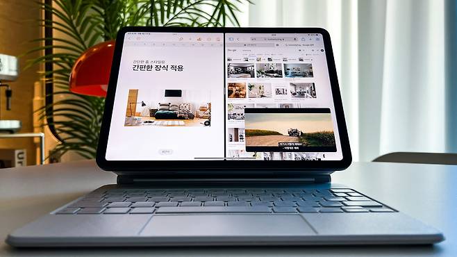 먼저 아이패드는 여러 가지 작업을 동시에 처리하는 데 컴퓨터만큼 탁월하지 못하다. 현 아이패드 운영체제의 경우 최대 3개 애플리케이션을 한 화면에서 실행하는 것이 가능하다. 예를 들면 화면분할(Split Screen)을 이용해 페이지(Page·애플의 문서작성 애플리케이션)로 문서 작성을 하면서 사파리(Safari·애플의 웹브라우저)로 필요한 정보를 찾을 수 있다. 여기에 화면 속 화면 기능(PIP·Picture In Picture)까지 곁들이면 넷플릭스(OTT)로 영상 시청까지 가능하다. 하지만 다수의 애플리케이션을 실행하고 자유롭게 배치할 수 있는 컴퓨터와 비교하면 한없이 부족하다.