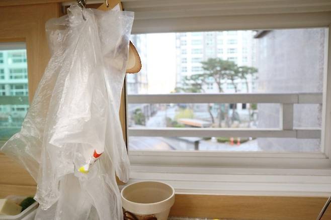 사진에 보이는 고무줄은 비닐봉지 묶을 때 사용하려 한 것인데, 꼭 필요한 것은 아니다.