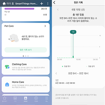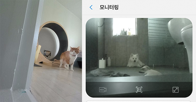 특히, 스마트싱스 앱으로 반려동물이 어디에서 뭘 하고 있는지 확인할 수 있으니 외출 했을 때도 안심이었어요.