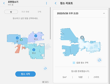 그리고 집에서 청소하고 싶은 곳만 지정해서 청소할 수 있는 지정청소 기능이 있어 좋았어요. 게다가, 스마트싱스 앱을 통해 화장실이나 단차가 있는 현관문 등은 청소 제외 구역으로 설정하면 되니 따로 걱정할 필요 없이 편리했고요.