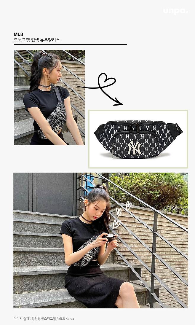 크로스백으로 연출해 포인트를 주었더라구!