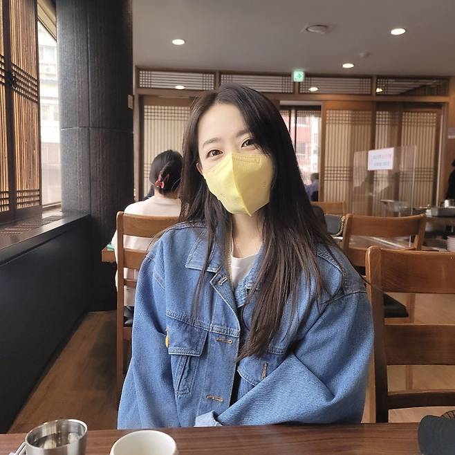 공개된 사진 속 박보영은 노란색 마스크를 쓰고서 식당에 앉아 카메라를 응시하는 모습이다.