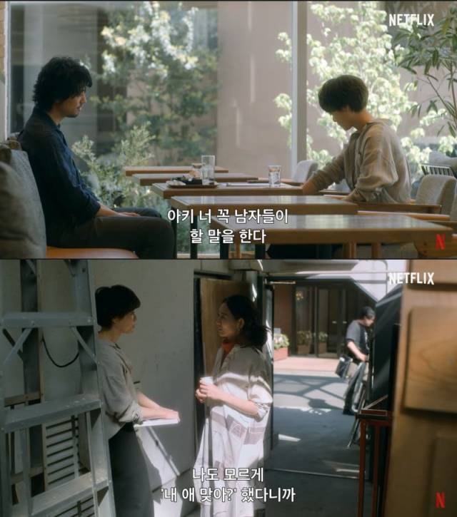 작품은 이런 지점에서 고정된 성 역할에 대해 역지사지로 생각하게 만든다. 임신, 출산으로 인해 사회와 멀어지는 여성의 이야기는 특별한 것이 아니다. ‘경단녀’(경력 단절 여성)라는 말이 통용된 지도 오래. 많은 부분에서 개선되고 있다고 하지만 여성이 사회에서 경력을 이어가는 것이 현실적으로 어려움이 많은 것은 사실이다. 또 아키는 켄타로의 임신 소식을 듣고 “내 애 맞아?”라는 말부터 나왔다. 아키의 동료는 “보통은 남자가 하는 이야기인데”라고 웃어넘겼지만 임신을 한 여성만 오롯이 짊어져야 하는 현실처럼 보여 씁쓸하기도 하다.