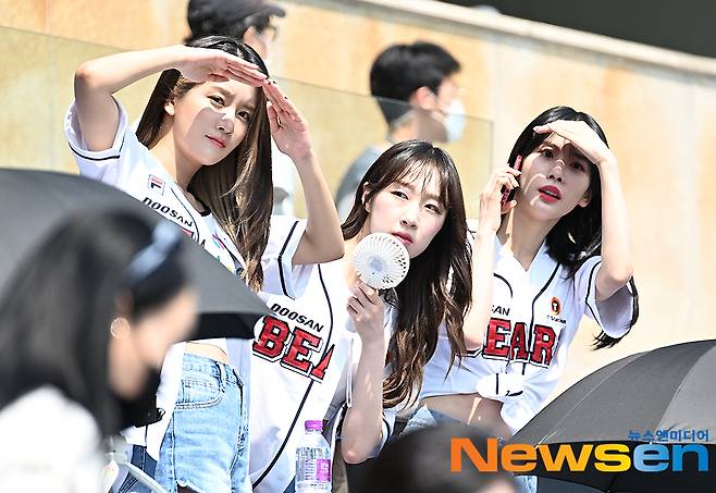 이날 우주소녀 엑시, 수빈, 설아가 경기장을 찾았다.