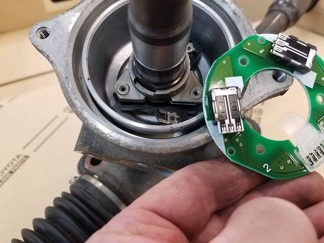그런데 전동식 스티어링 휠의 핵심 부품인 토크센서가 휘게 되면 스티어링 휠 모터에 전기 공급이 원활하지 않아 핸들락이 발생하는 것이죠. 요즘 출시되는 차량의 전자식 스티어링 휠에서 이런 고장이 자주 발생한다고 합니다. 토크센서는 자동차 바퀴의 움직임을 감지하여 신호를 전달하는데 여기의 문제가 생기면 바퀴의 움직임을 감지하지 못해 방향 조절이 어려워지는 것이죠.