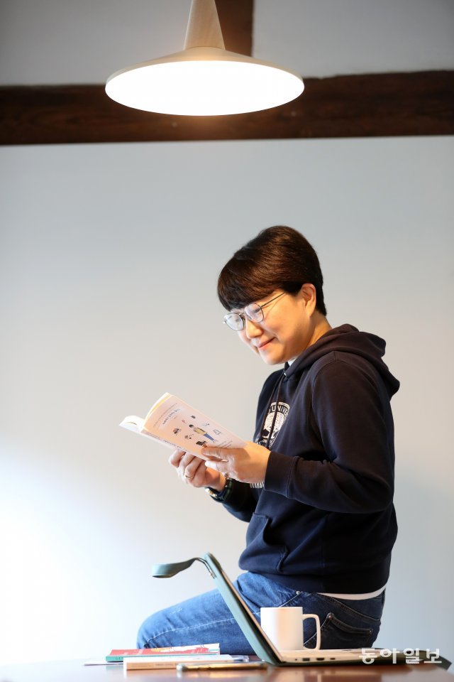 그는 볕이 잘 드는 카페 창가에 앉아 매일 3, 4시간씩 공부를 하거나 번역 업무를 한다. “매일 어느 카페에 갈 지를 고른 뒤 외출복으로 갈아입고 집을 나서요. ‘집순이’에서 출근하는 직장인으로 나를 전환하는 거죠. 경복궁역 근처 프랜차이즈 카페 의자, 동네 개인 카페의 창가 자리, 서울 종로구 서촌의 골목길에 있는 한옥 카페 구석이 제 방입니다.”