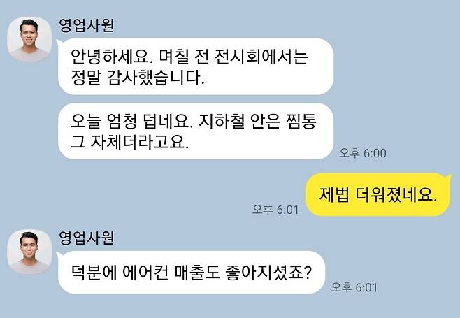 예시를 하나 들자면 키워드 중 계절은 처음의 인사부터 세세상 이야기로까지 자연스럽게 대화를 이어갈 수 있다.