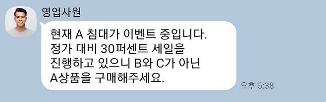 안내, 설득, 제안의 차이에 대해 살펴보자. 침구 매장을 예로 설명하면 다음과 같다.