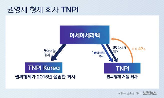 아세아세라텍은 2012년 16억여원을 주고 TNPI HK의 모회사격인 TNPI(서울 소재)의 주식 49.99%를 구입하고 대주주가 된다. 이때도 당시 TNPI 주식의 액면가로 책정됐던 금액의 3배에 달하는 고액으로 주식을 구입해준다.