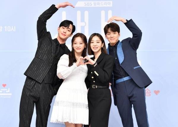 25일 오후 온라인으로 진행된 SBS 새 월화 드라마 ‘사내맞선’ 제작발표회. 이날 행사에는 박선호 감독을 비롯해 주연 배우 안효섭, 김세정, 김민규, 설인아가 참석했다.