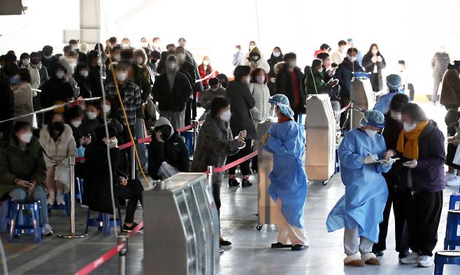 | 북적이는 선별진료소 3일 광주광역시 북구보건소 선별진료소에서 시민들이 코로나19 검사를 받기 위해 대기하고 있다. 광주=연합뉴스 |