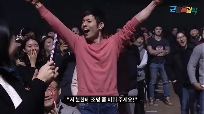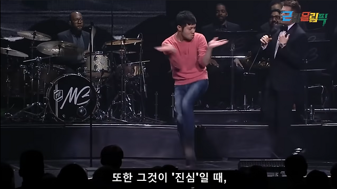 기억하죠. 제가 기억하기로는 그가 객석에서 복도쪽으로 나와서 춤추고 있었던 것으로 기억해요. 그리고 그는 전력을 다하고 있었죠. 정말, 온 힘을 다해.. 그걸 보고 저는 생각했죠. ‘좋아.. 저 친구를 무대로 불러야겠다. 모두와 함께 공유해야겠다.’ 이런 과정이었던 걸로 기억해요.