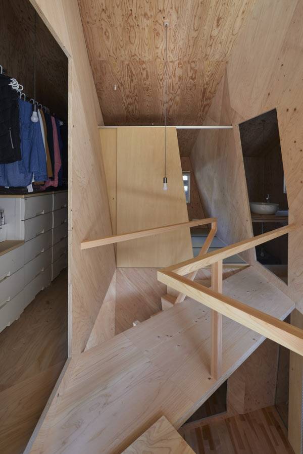 [땅집고] 일본 교토 주택가 한 모퉁이에 2층짜리 협소주택 ‘24mm 플리우드 하우스’(24mm plywood house)가 눈길을 끈다. 이 집은 두께가 24mm인 합판을 사용해 이런 이름이 붙었다. 24mm 합판을 노출해 실내 인테리어와 외관을 마감했다.