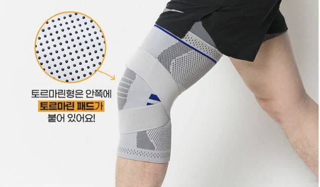 무릎 보호대 안쪽에 토르마린 패드가 부착돼있는데요. 토르마린이란 음이온과 미약전류, 원적외선을 생성하는 광물입니다. 토르마린에서 발생하는 음이온이 몸을 약 알칼리성 체질로 개선해 노화의 원인인 산화를 막고 면역력을 증진시켜 주는 것으로 알려졌습니다.