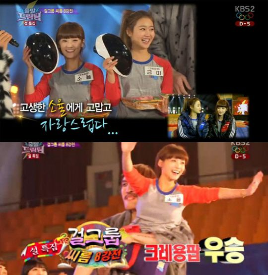 각종 예능 프로그램에서도 두각을 드러낸 그녀는 과거 '설 특집 걸그룹 씨름대회'에 출전해 본인보다 큰 연예인들을 상대로 화려한 씨름 기술을 선보이며 '소녀 장사'로 등극해 당시 엄청난 화제가 되기도 했습니다.