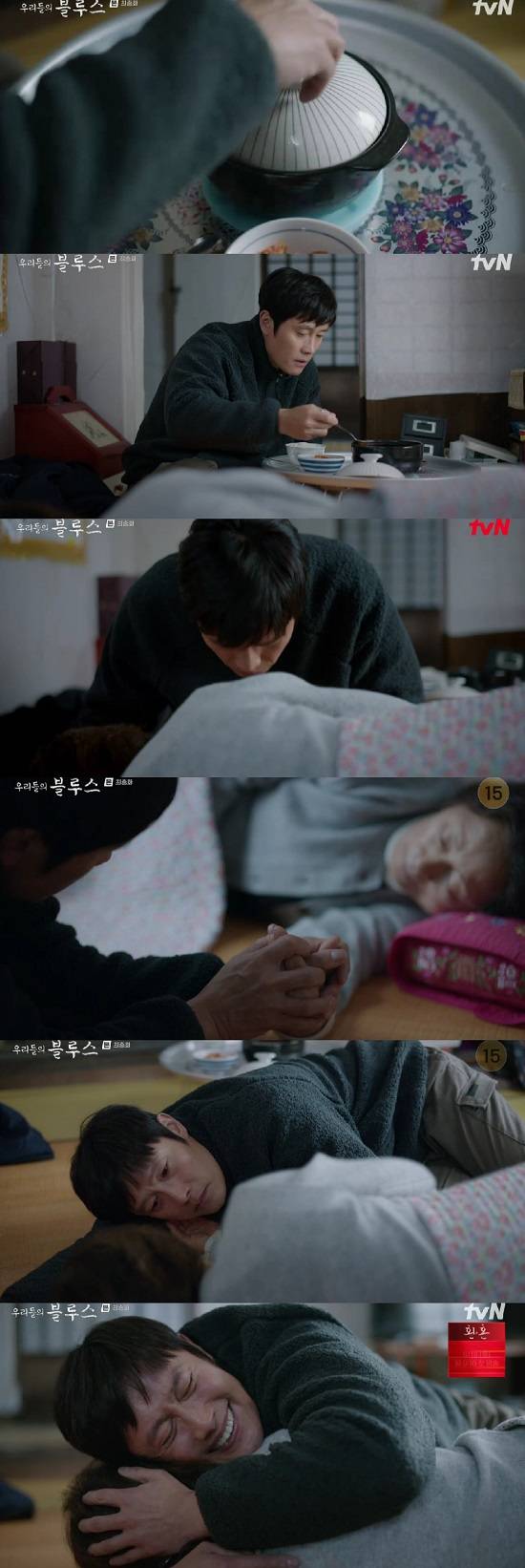 12일 방송된 tvN 토일드라마 ‘우리들의 블루스 최종회에서는 이동석(이병헌 분)이 강옥동(김혜자)과 마지막 시간을 함께 하는 모습이 그려졌다.
