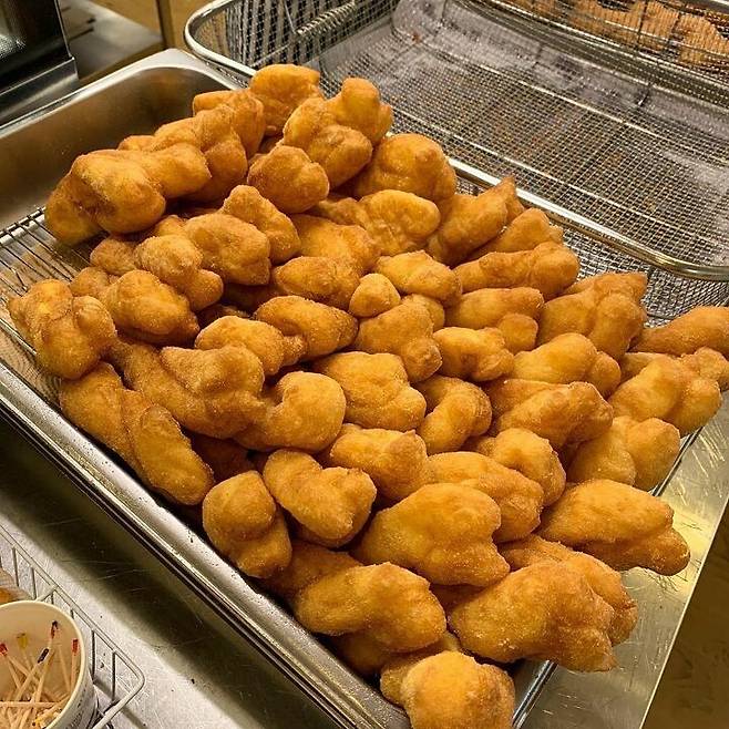 [식신TIP] 꽈배기가 메인이지만 찹쌀도넛, 고로케까지 맛있어요. 얇고 고소한 반죽이 페이스트리를 연상시킨다죠. 겉바속촉의 진수를 맛볼 수 있어요.