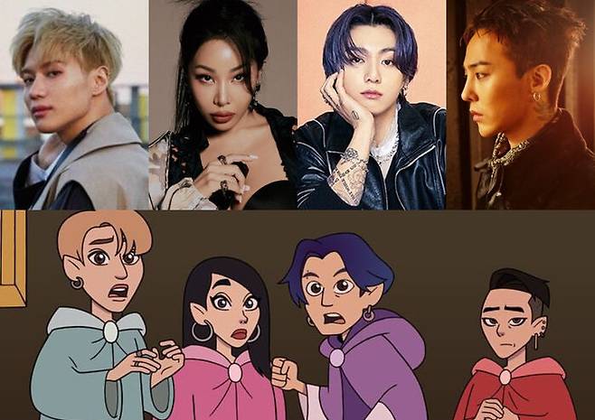 캐릭터들은 실제 정국, 지드래곤, 태민, 제시의 생김새를 그대로 옮겨 놓았고, 특히 정국은 방탄소년단 'Butter(버터)' 뮤직비디오의 보라색 머리를 한 모습이 캐릭터화됐습니다.