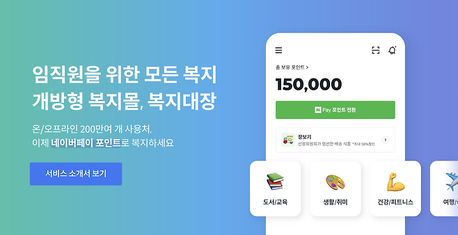 이런 흐름 때문인지 사내 복지 포인트를 간편 결제 페이로 바꿔주는 서비스도 인기를 얻고 있습니다. 스타트업 '벤디스'가 그 예입니다. 벤디스는 개방형 복지몰 '복지대장'을 운영 중입니다. 벤디스는 이 서비스를 위해 네이버파이낸셜과 제휴했습니다. 기업 복지포인트를 네이버페이 포인트로 전환해 사용할 수 있는 개방형 복지몰을 운영합니다.
