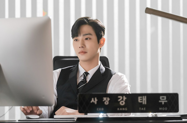 안효섭은 얼굴도 일도 잘하는 나르시스트 CEO 강태무를 연기합니다.