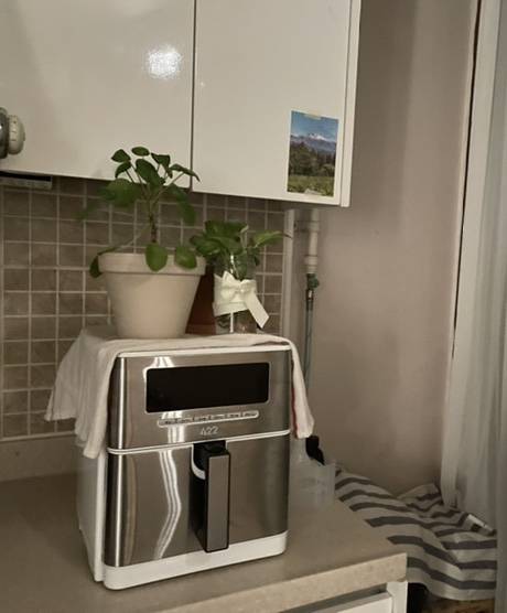 에어프라이어를 처음 들였을 때 투박한 큰 물건이 떡하니 자리 잡아 마음에 안 들었는데 이 천을 올려주니 느낌이 다르다! 실제로 보면 차이가 꽤 큼.