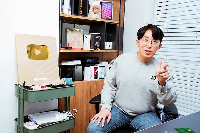 “안녕하세요 잇섭입니다!” 구수한 경상도 사투리로 전자기기와 관련된 알짜배기 정보를 진하게 담아내는 채널이 있다. 노트북, 키보드, 스마트폰은 물론 전동칫솔, 로봇 청소기 등 소개하는 제품들도 다양하다. 최근에는 자동차 분야까지 진출한 ‘IT Sub 잇섭’ 채널이다. 약 205만 명의 구독자를 보유하고 있는 그를 만나기 위해 마포구에 위치한 사무실로 찾아갔다. 역시 테크 유튜버 답게 다양한 전자기기와 컴퓨터 부품으로 가득한 사무실에서‘잇섭’을 만날 수 있었다.