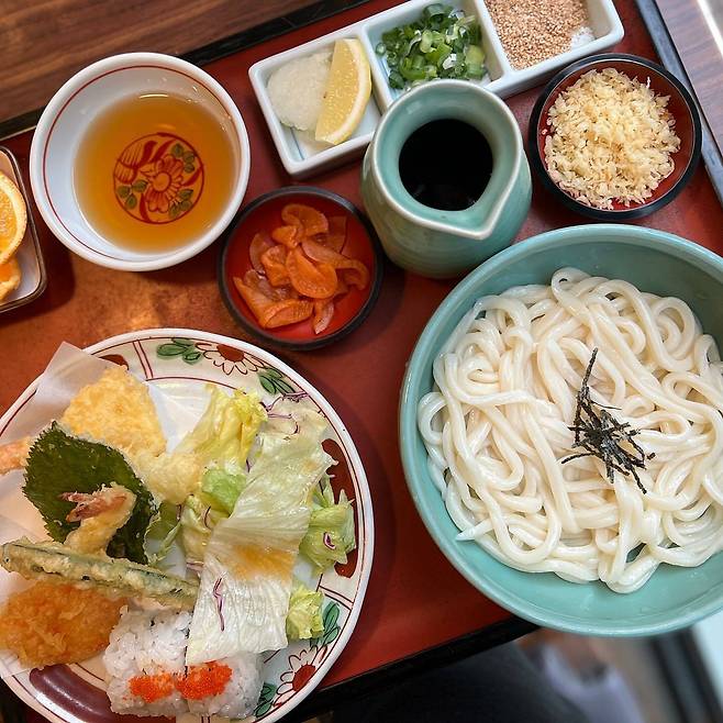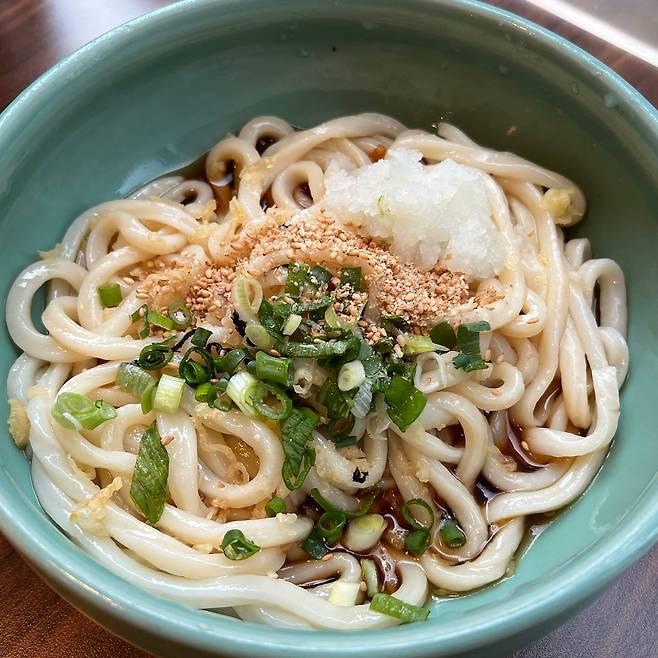 [식신TIP] 다양한 종류의 일본 전통 우동을 선보이는 공간이에요. 차가운 면에 간장소스, 반숙 계란 튀김, 어묵 튀김, 튀김 가루, 쪽파를 올린 ‘치쿠타마텐 붓가께’가 인기 메뉴랍니다. 차갑게 식힌 면은 탄력이 살아있어 쫀득 탱탱 해요!